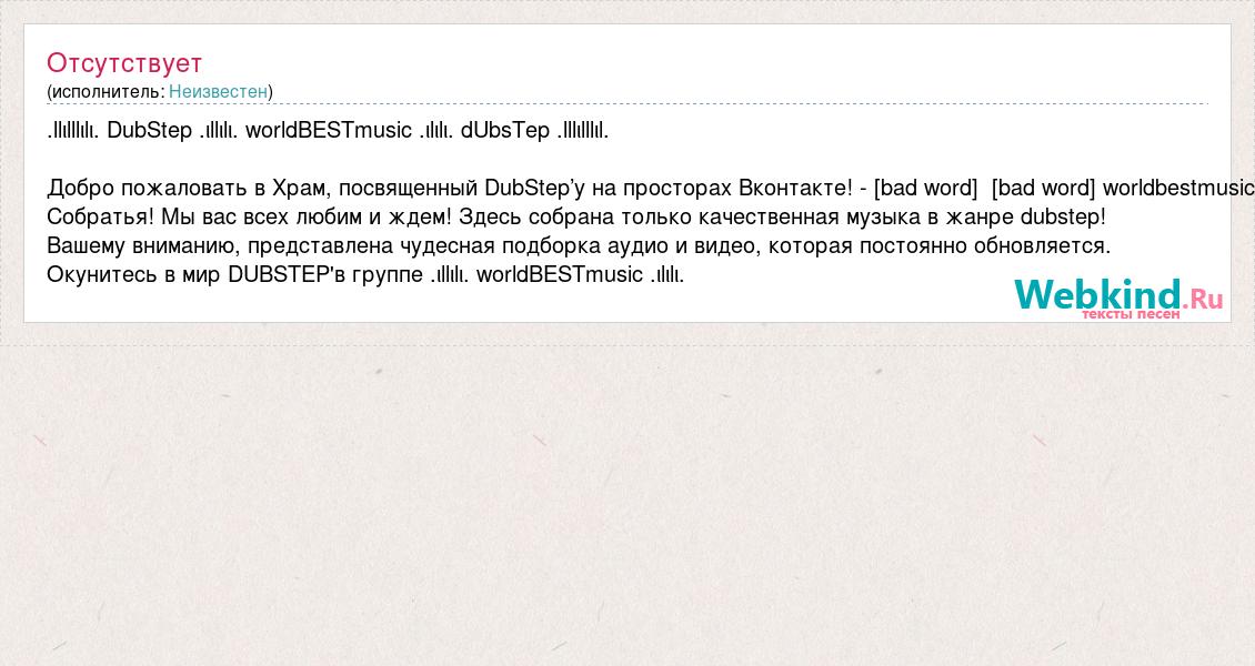Добро пожаловать в Храм, посвященный DubStep’у на просторах Вконтакте! - [bad word]  [bad word] worldbestmusic
