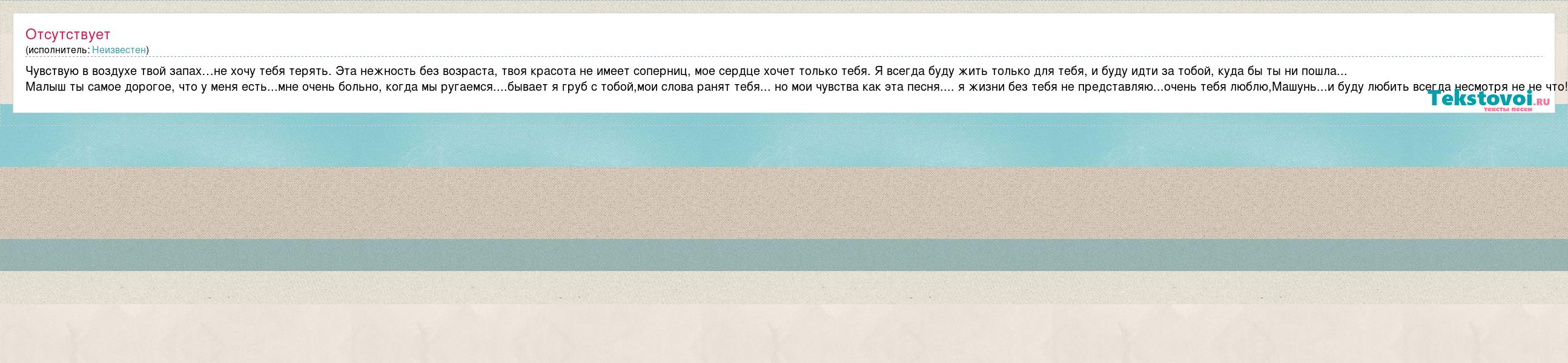 Малыш ты самое дорогое, что у меня есть...мне очень больно, когда мы ругаемся....бывает я груб с тобой,мои слова ранят тебя... но мои чувства как эта песня.... я жизни без тебя не представляю...очень тебя люблю,Машунь...и буду любить всегда несмотря не не что!