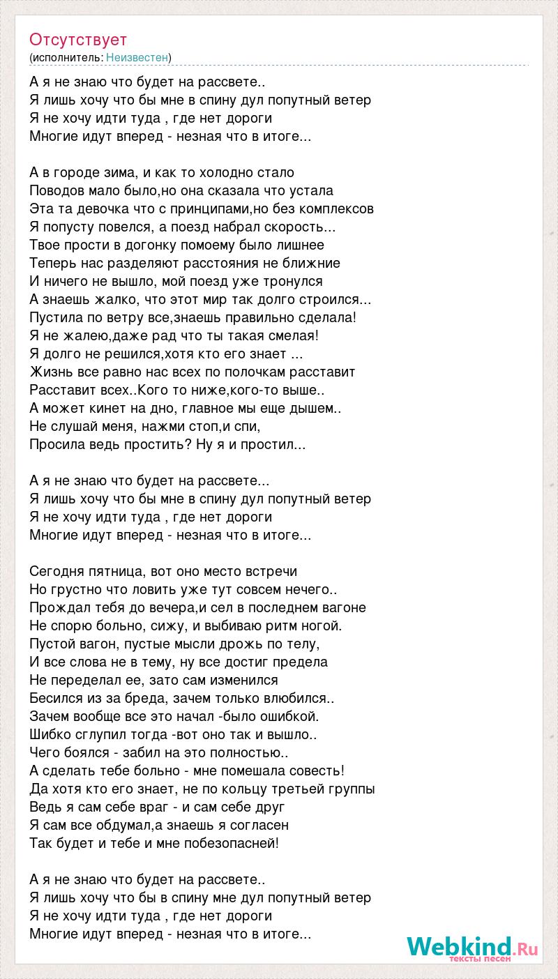 А я не знаю что будет на рассвете...