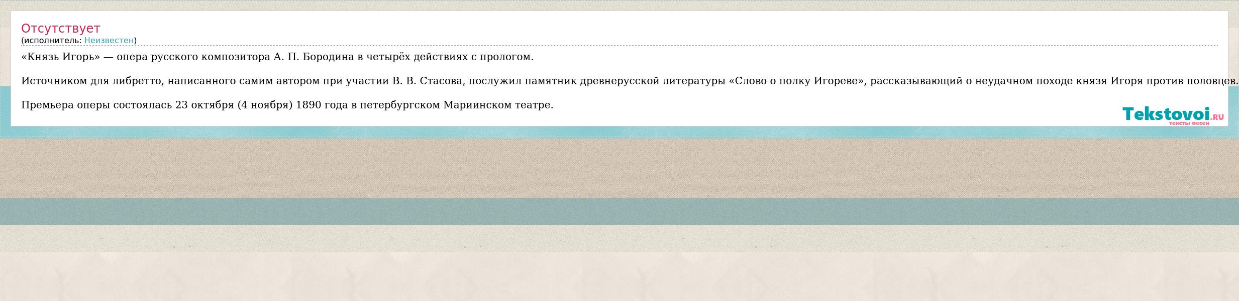 Отсутствует (исполнитель: Неизвестен)