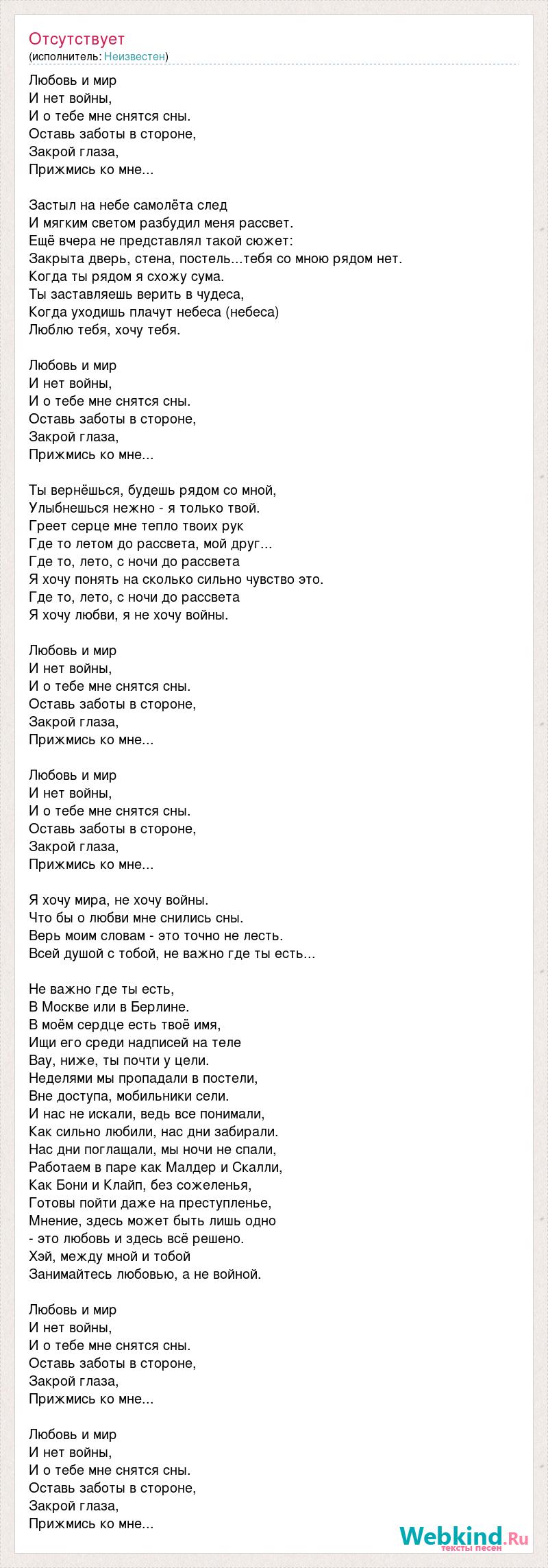 Я хочу любви, я не хочу войны.