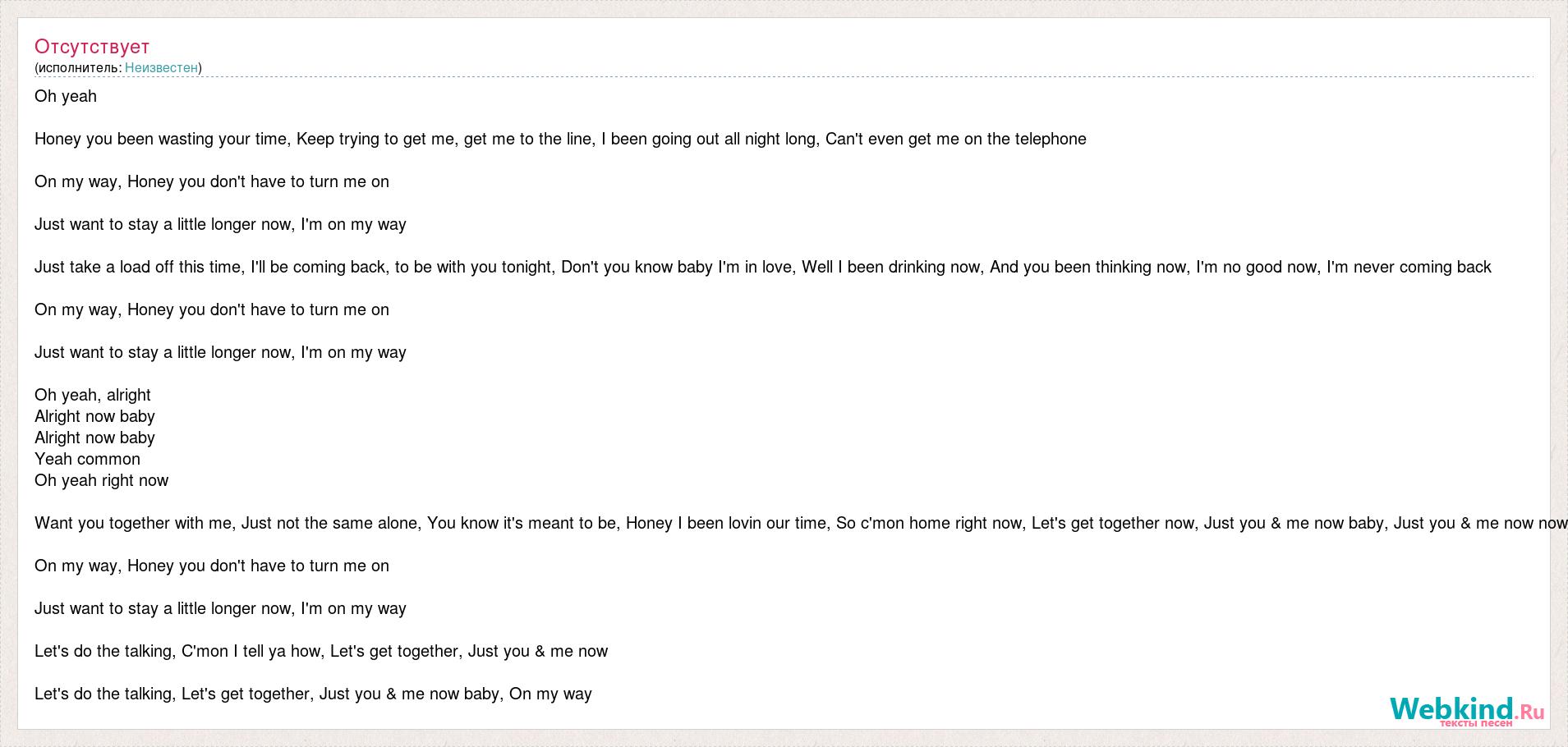 Let's do the talking, Let's get together, Just you & me now baby, On my way