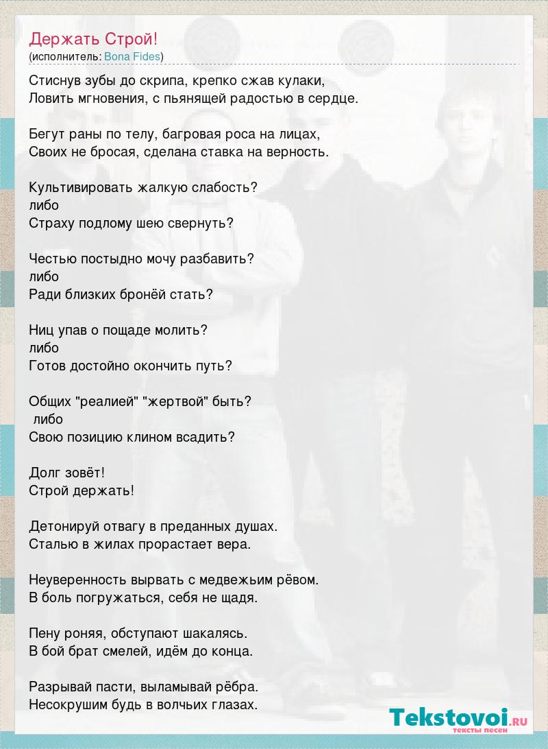 Стиснув зубы до скрипа, крепко сжав кулаки, Ловить мгновения, с пьянящей радостью в сердце. Бегут раны по телу, багровая роса на лицах, Своих не бросая, сделана ставка на верность. Культивировать жалкую слабость? либо Страху подлому шею свернуть? Честью постыдно мочу разбавить? либо Ради близких бронёй стать? Ниц упав о пощаде молить? либо Готов достойно окончить путь? Общих "реалией" "жертвой" быть? либо Свою позицию клином всадить? Долг зовёт! Строй держать! Детонируй отвагу в преданных душах. Сталью в жилах прорастает вера. Неуверенность вырвать с медвежьим рёвом. В боль погружаться, себя не щадя. Пену роняя, обступают шакалясь. В бой брат смелей, идём до конца. Разрывай пасти, выламывай рёбра. Несокрушим будь в волчьих глазах.