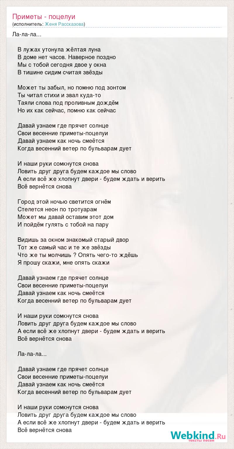 Приметы - поцелуи (исполнитель: Женя Рассказова)