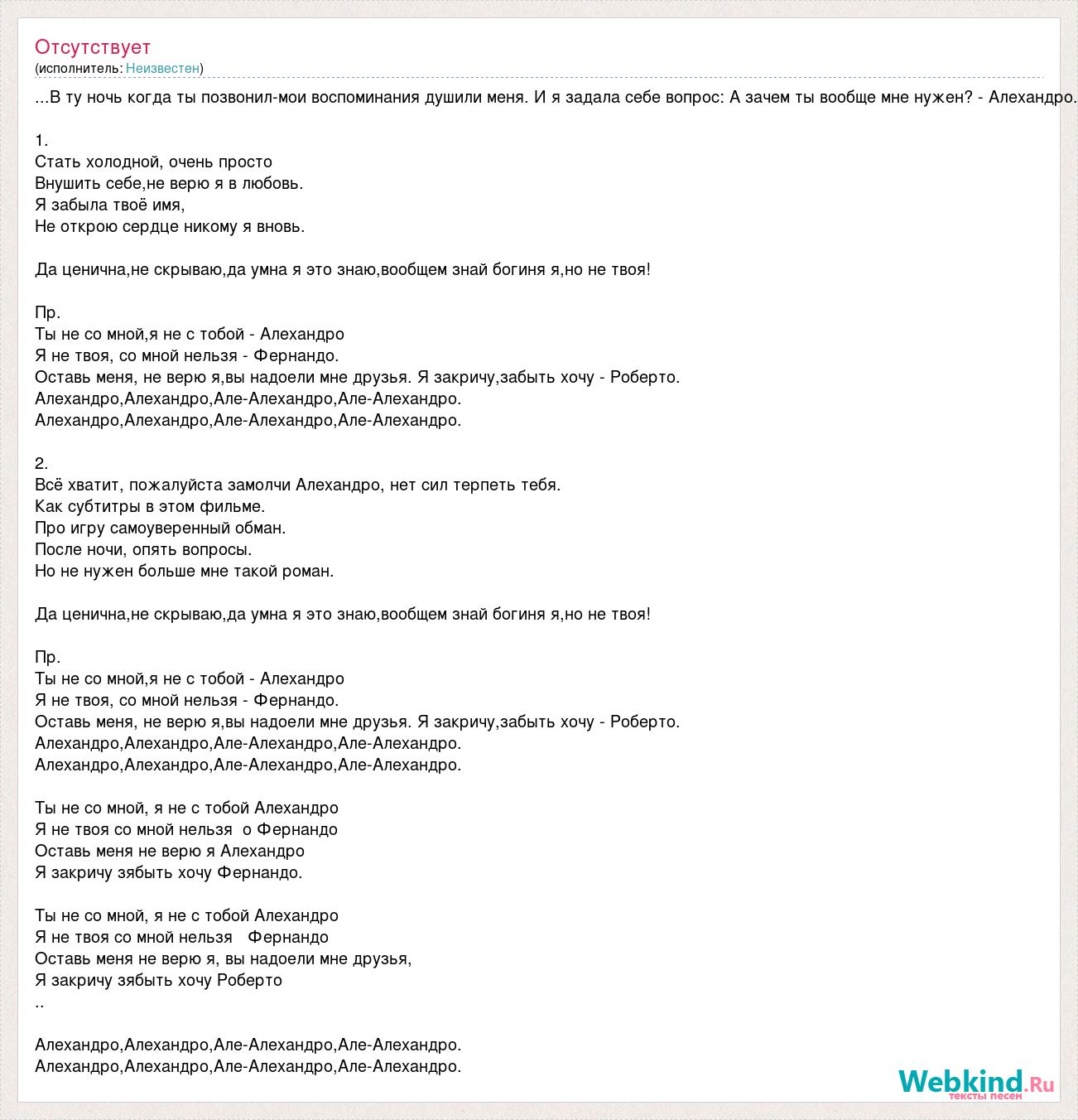 Ты не со мной, я не с тобой Алехандро