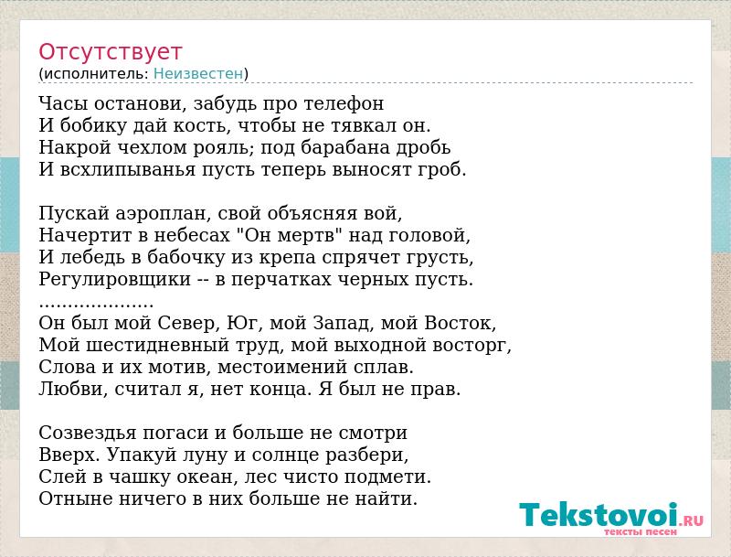 Отсутствует (исполнитель: Неизвестен)