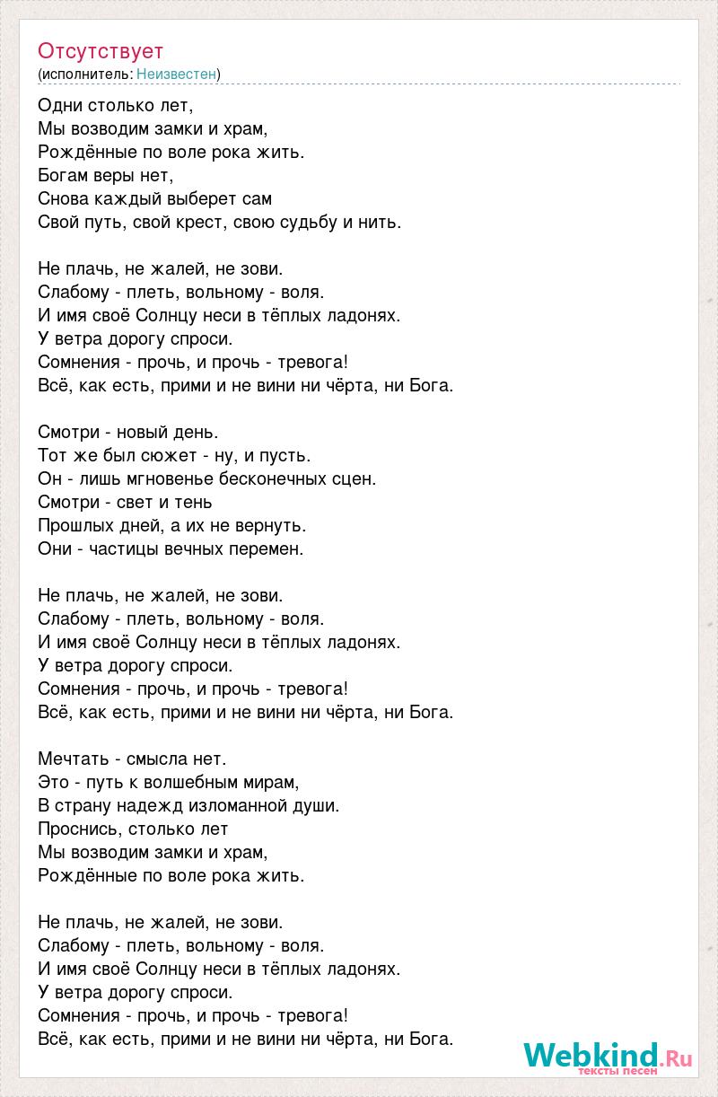 Свой пyть, свой кpест, свою сyдьбy и нить.