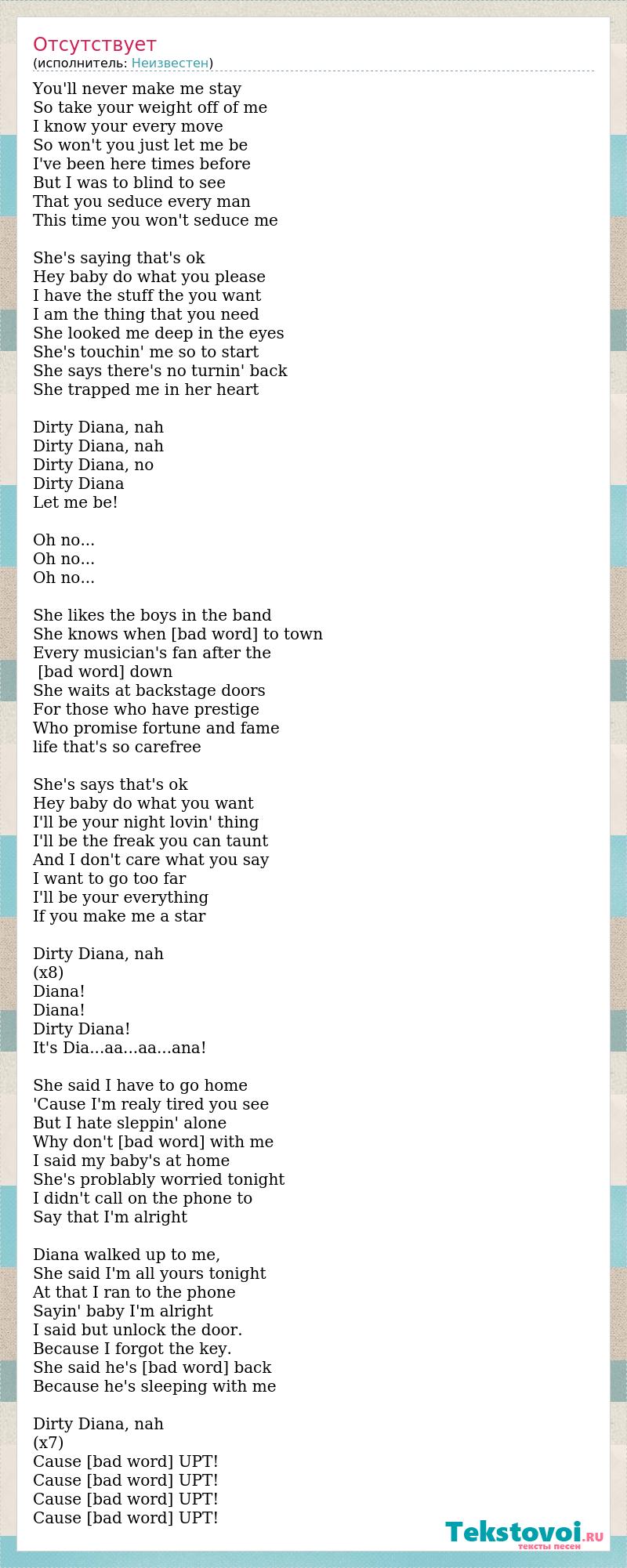 Dirty Diana, nah