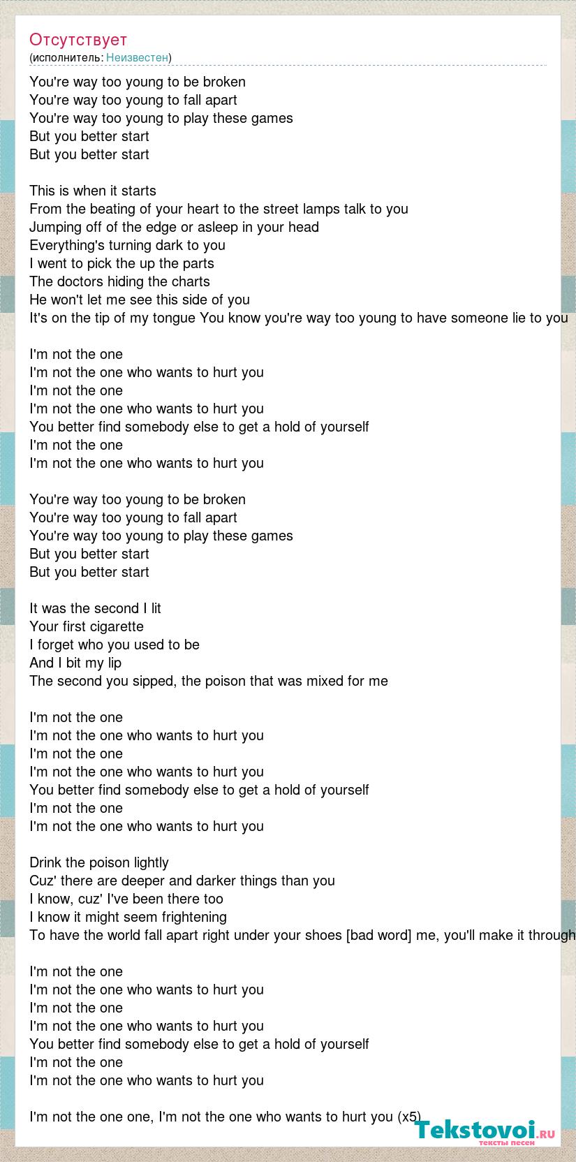I'm not the one one, I'm not the one who wants to hurt you (x5)