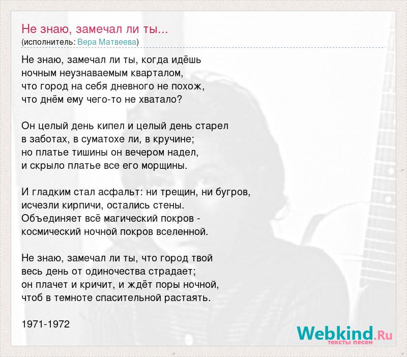 Не знаю, замечал ли ты... (исполнитель: Вера Матвеева)