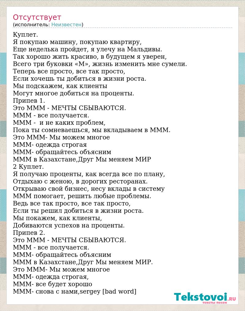Это МММ - МЕЧТЫ СБЫВАЮТСЯ.