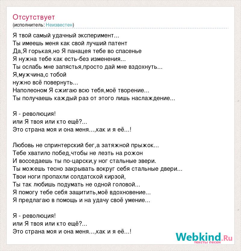 Я твой самый удачный эксперимент...