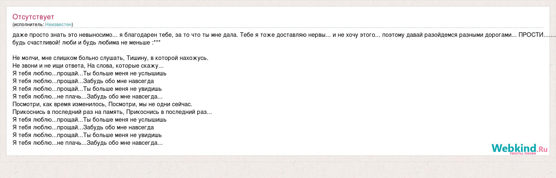 Я тебя люблю...прощай...Забудь обо мне навсегда