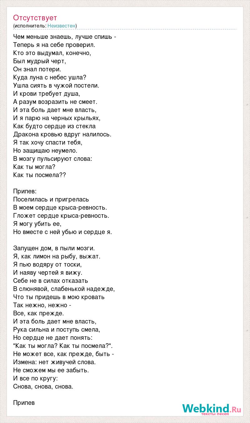 В моем сердце крыса-ревность.