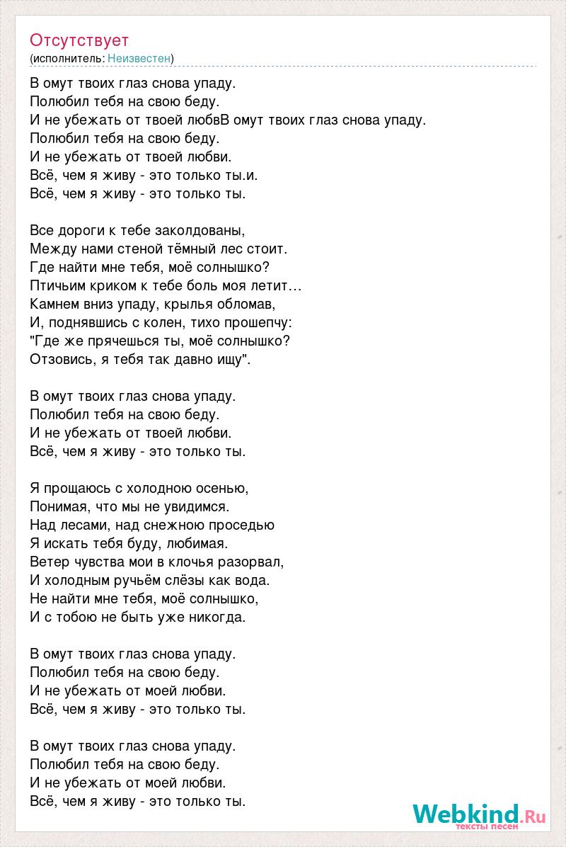 И не убежать от твоей любвВ омут твоих глаз cнова упаду.