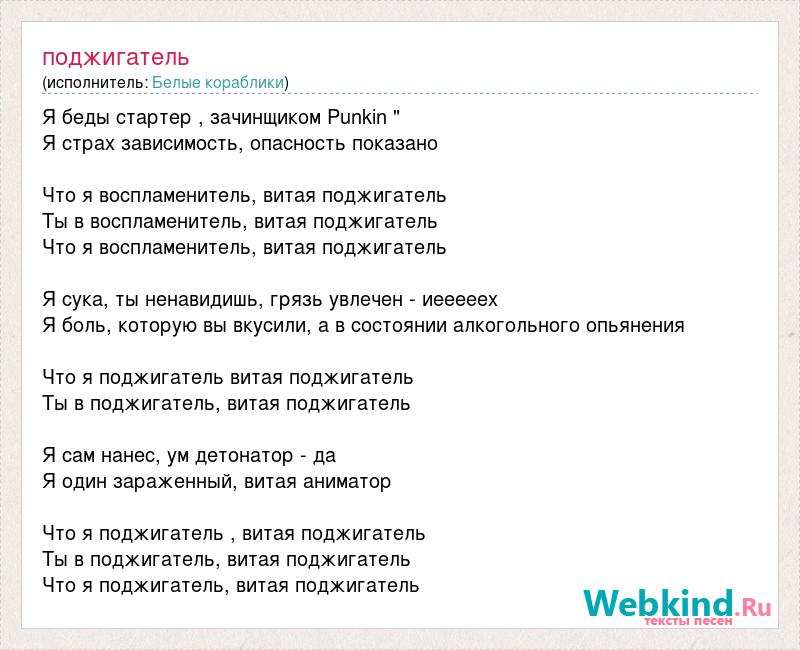 Я беды стартер , зачинщиком Punkin " Я страх зависимость, опасность показано Что я воспламенитель, витая поджигатель Ты в воспламенитель, витая поджигатель Что я воспламенитель, витая поджигатель Я сука, ты ненавидишь, грязь увлечен - иееееех Я боль, которую вы вкусили, а в состоянии алкогольного опьянения Что я поджигатель витая поджигатель Ты в поджигатель, витая поджигатель Я сам нанес, ум детонатор - да Я один зараженный, витая аниматор Что я поджигатель , витая поджигатель Ты в поджигатель, витая поджигатель Что я поджигатель, витая поджигатель