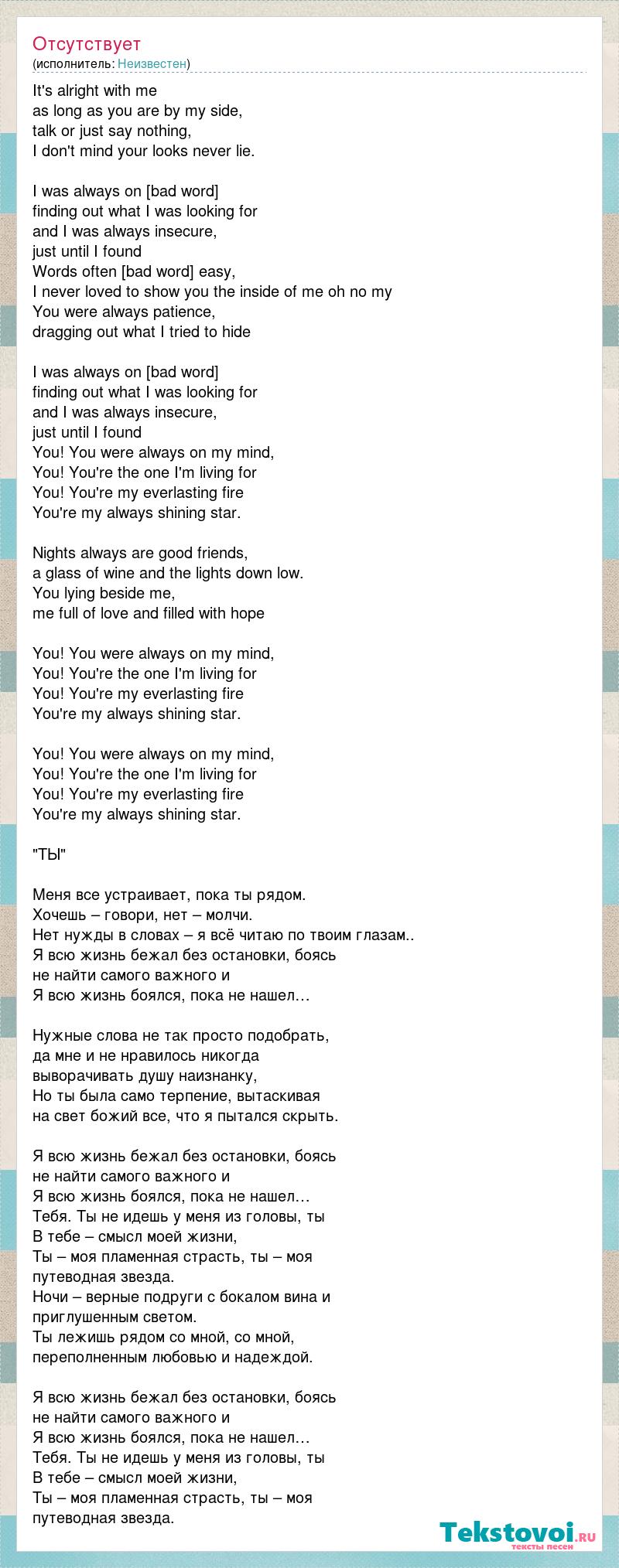 Нет нужды в словах – я всё читаю по твоим глазам..