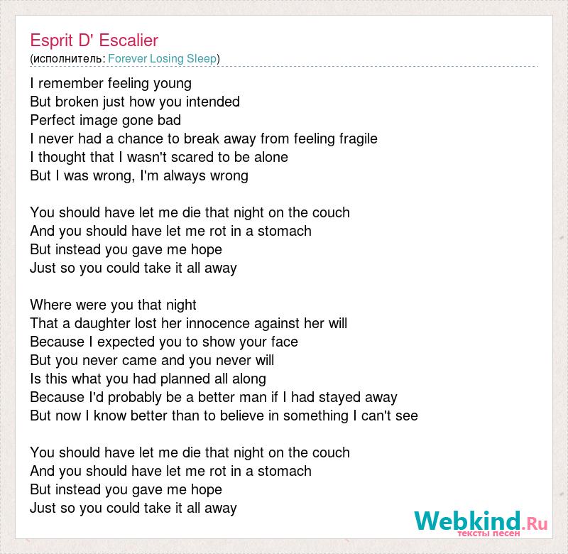 Esprit D' Escalier (исполнитель: Forever Losing Sleep)