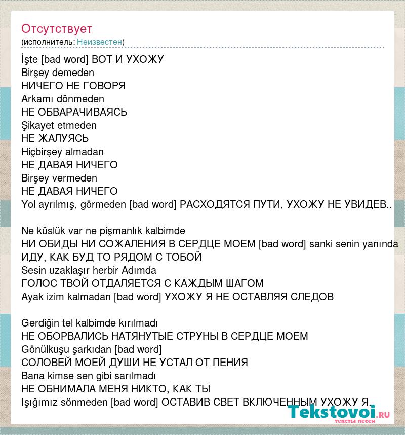 Yol ayrılmış, görmeden [bad word] РАСХОДЯТСЯ ПУТИ, УХОЖУ НЕ УВИДЕВ..