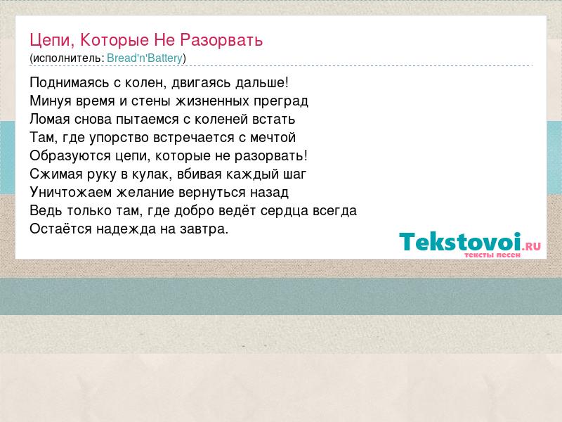 Цепи, Которые Не Разорвать (исполнитель: Bread'n'Battery)