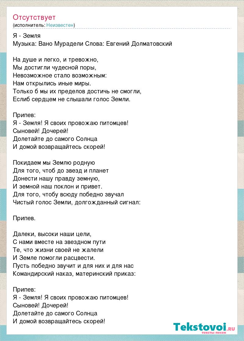 Музыка: Вано Мурадели Слова: Евгений Долматовский
