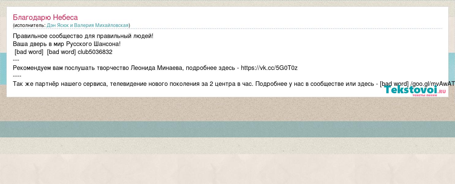 Благодарю Небеса (исполнитель: Дэн Ясюк и Валерия Михайловская)