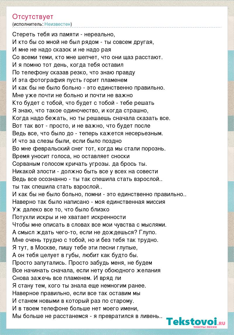 Стереть тебя из памяти - нереально,