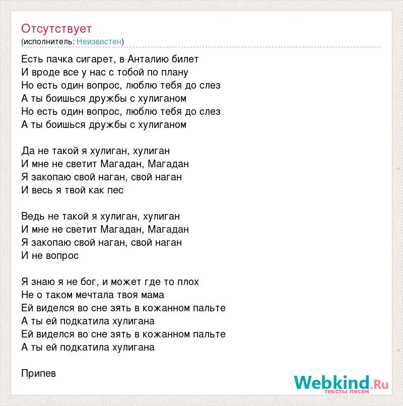 Ведь не такой я хулиган, хулиган