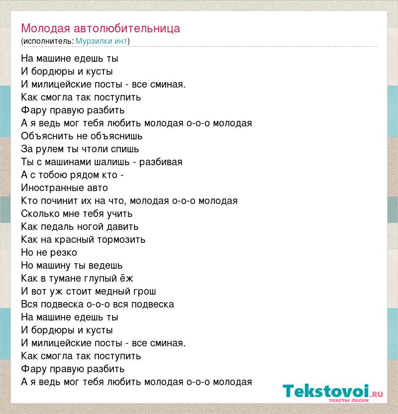 Молодая автолюбительница (исполнитель: Мурзилки инт)