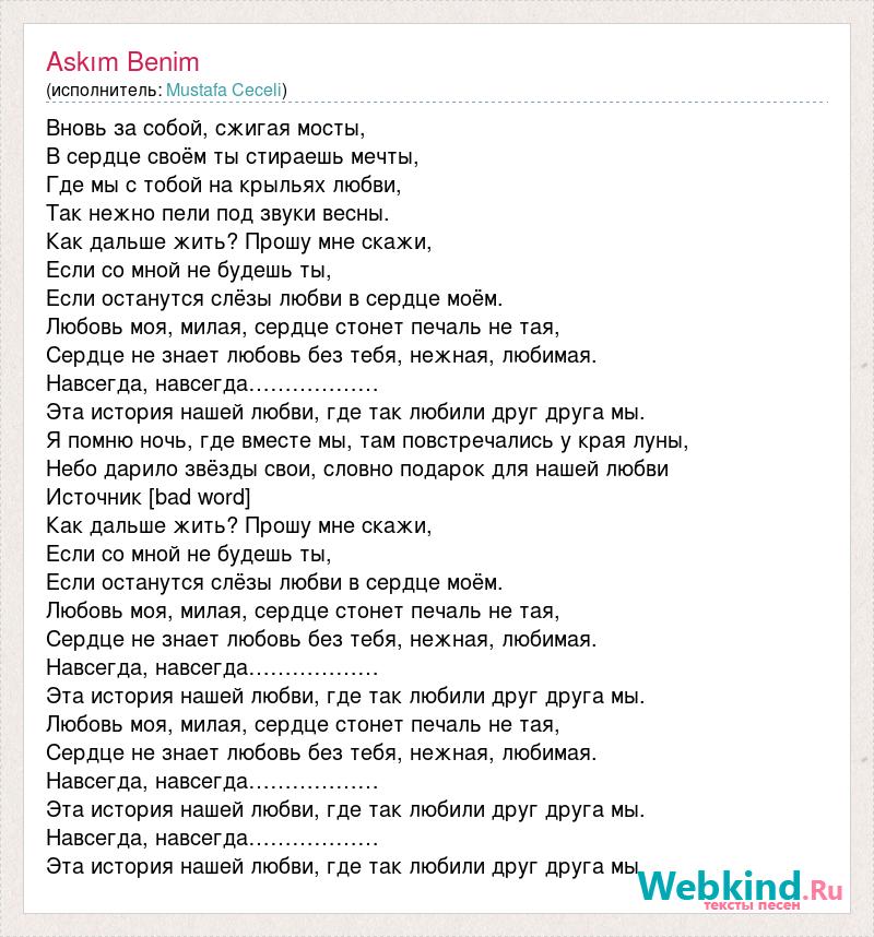 Askım Benim (исполнитель: Mustafa Ceceli)