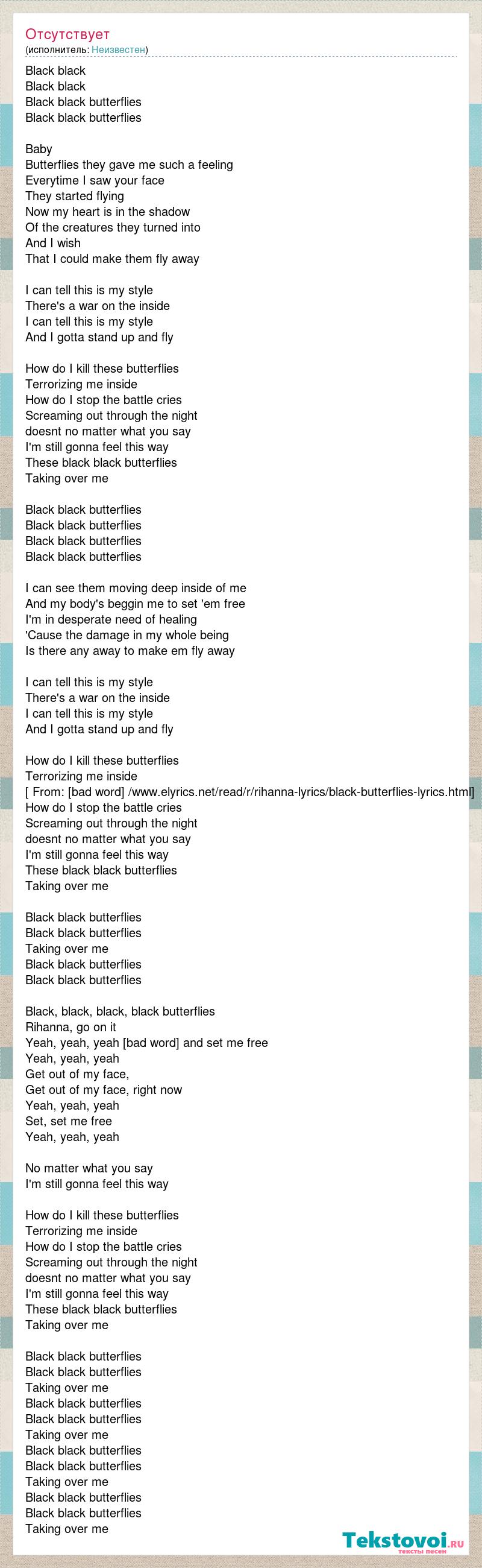 [ From: [bad word] /www.elyrics.net/read/r/rihanna-lyrics/black-butterflies-lyrics.html]