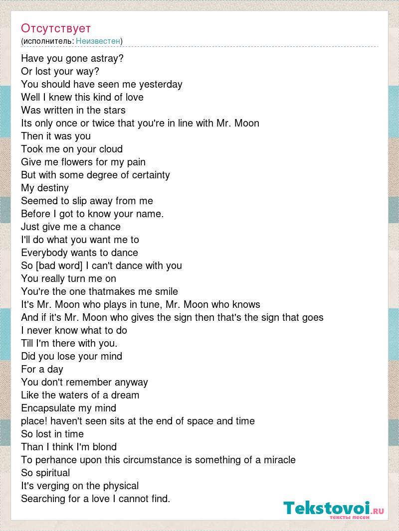It's Mr. Moon who plays in tune, Mr. Moon who knows