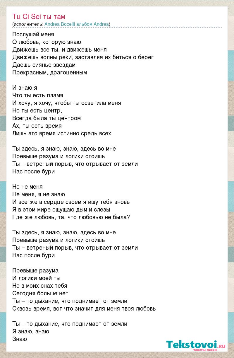 Tu Ci Sei ты там (исполнитель: Andrea Bocelli альбом Andrea)