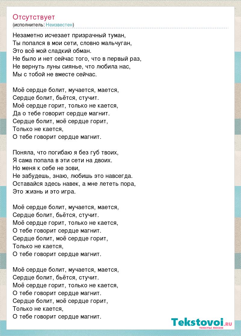 Моё сердце болит, мучается, мается,