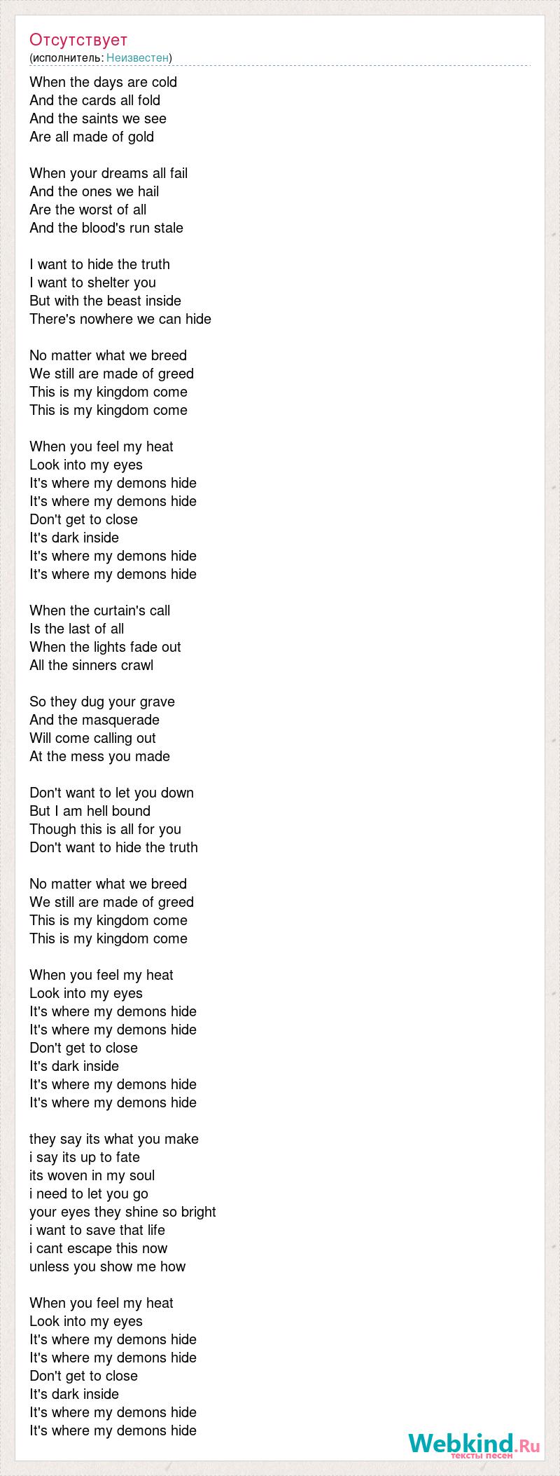 It's where my demons hide
