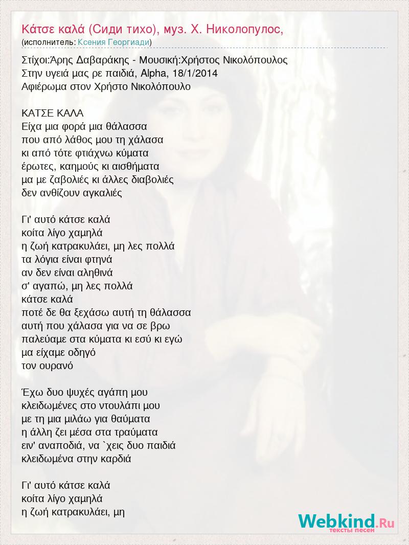 Κάτσε καλά (Сиди тихо), муз. Х. Николопулос, (исполнитель: Ксения Георгиади)