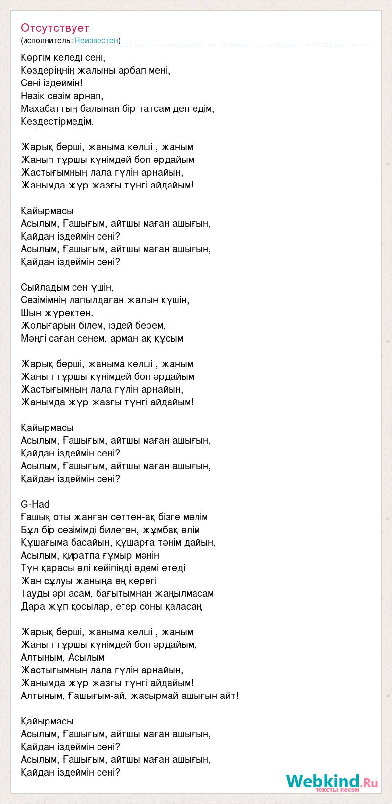 Асылым, Ғашығым, айтшы маған ашығын,