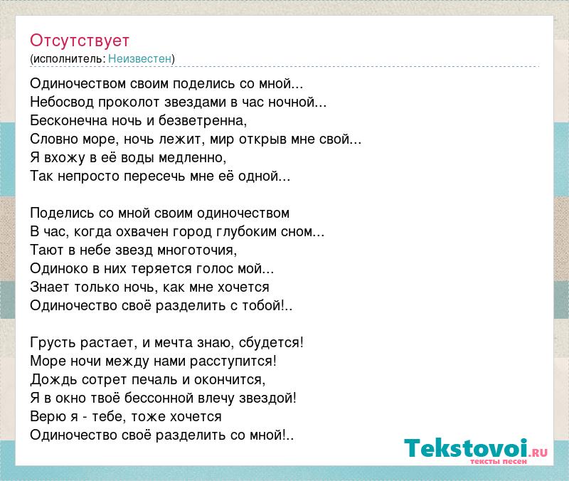 Одиночеством своим поделись со мной...