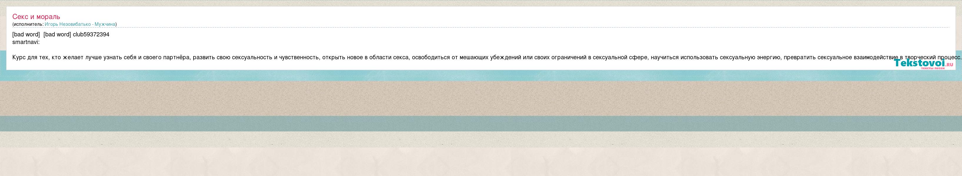 [bad word] [bad word] club59372394 smartnavi: Курс для тех, кто желает лучше узнать себя и своего партнёра, развить свою сексуальность и чувственность, открыть новое в области секса, освободиться от мешающих убеждений или своих ограничений в сексуальной сфере, научиться использовать сексуальную энергию, превратить сексуальное взаимодействие в творческий процесс.