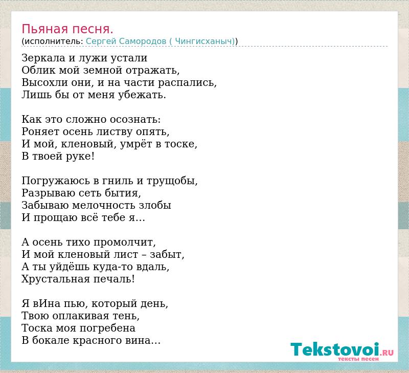 Пьяная песня. (исполнитель: Сергей Самородов ( Чингисханыч))