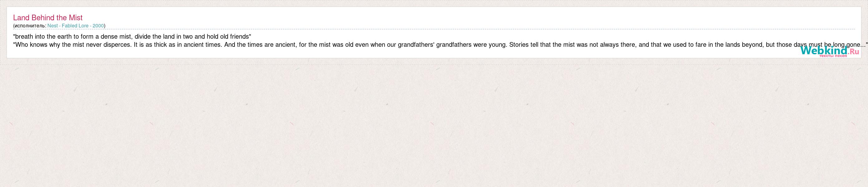 Land Behind the Mist (исполнитель: Nest - Fabled Lore - 2000)