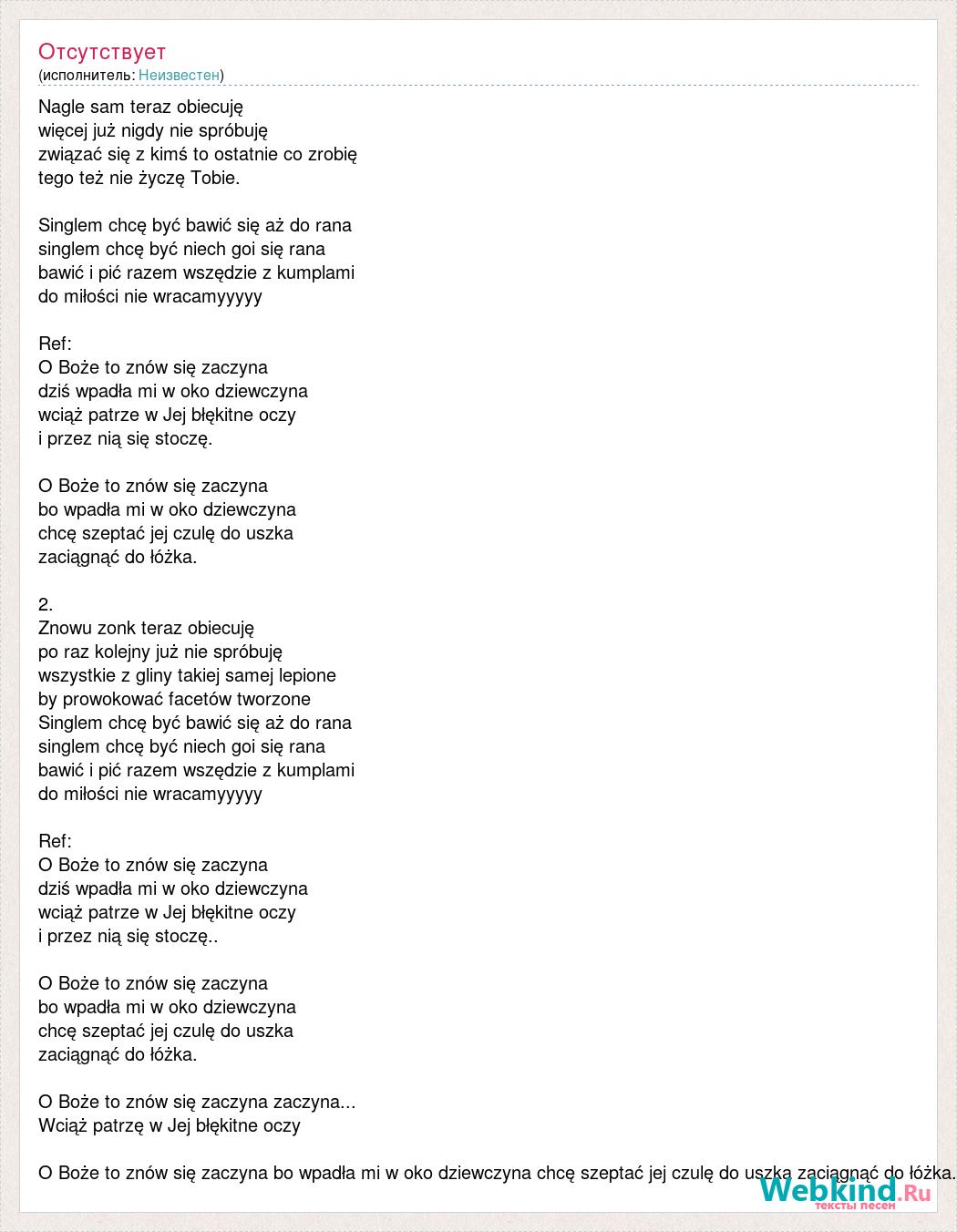 singlem chcę być niech goi się rana