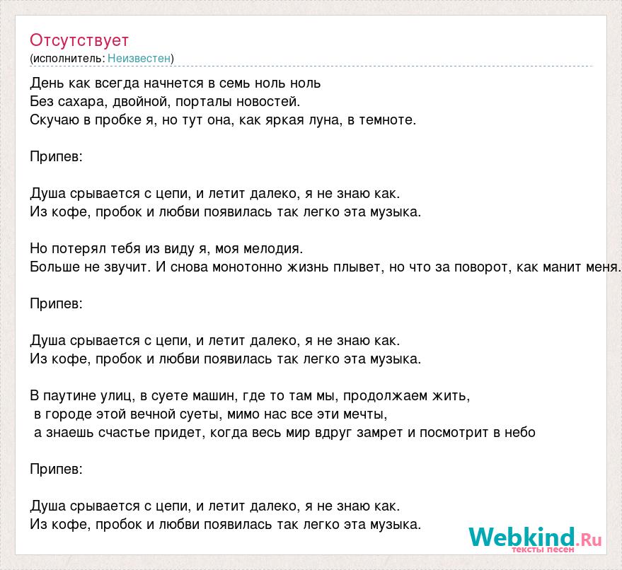 Душа срывается с цепи, и летит далеко, я не знаю как.