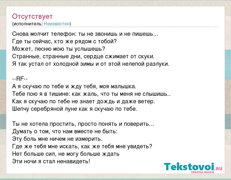 Снова молчит телефон: ты не звонишь и не пишешь...