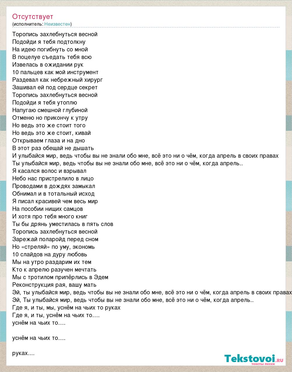 Эй, Ты улыбайся мир, ведь чтобы вы не знали обо мне, всё это ни о чём, когда апрель..