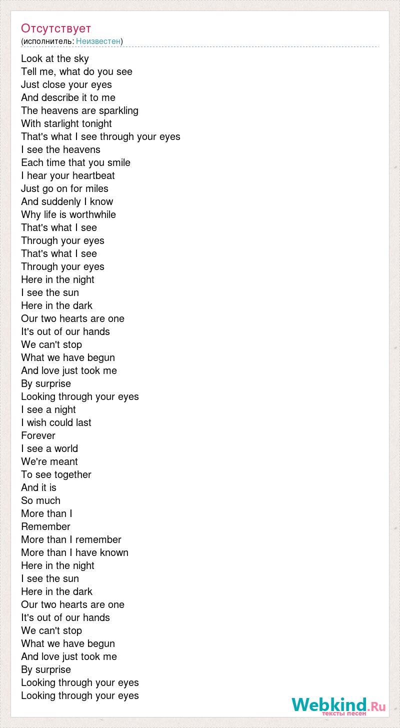 That's what I see through your eyes