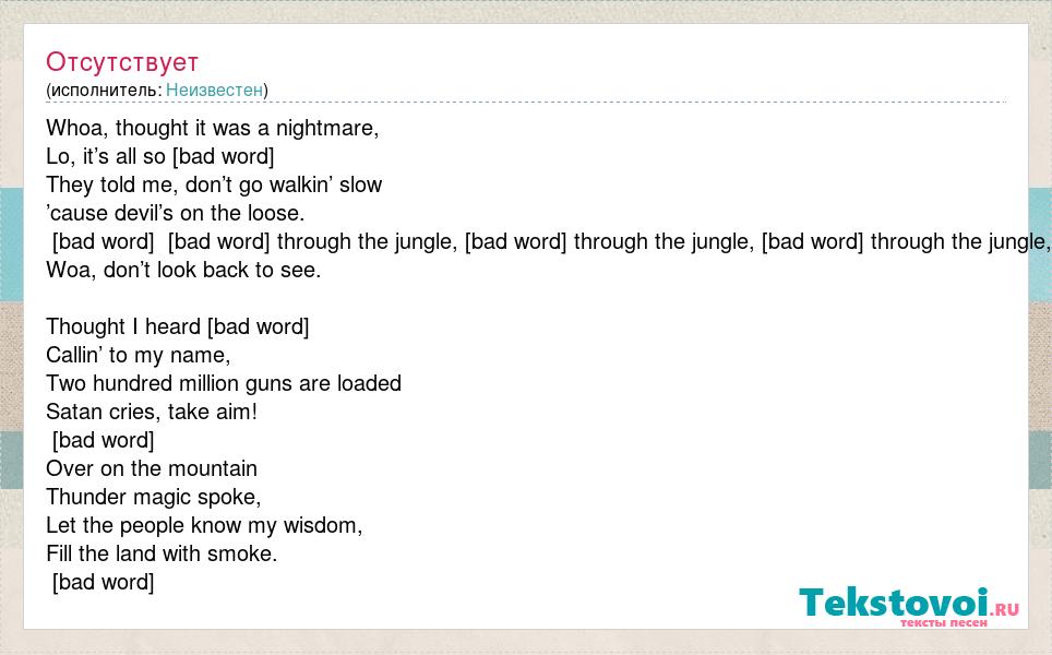 [bad word]  [bad word] through the jungle, [bad word] through the jungle, [bad word] through the jungle,