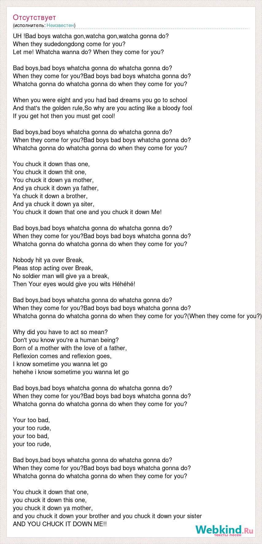 When [bad word] for you?Bad boys bad boys whatcha gonna do?