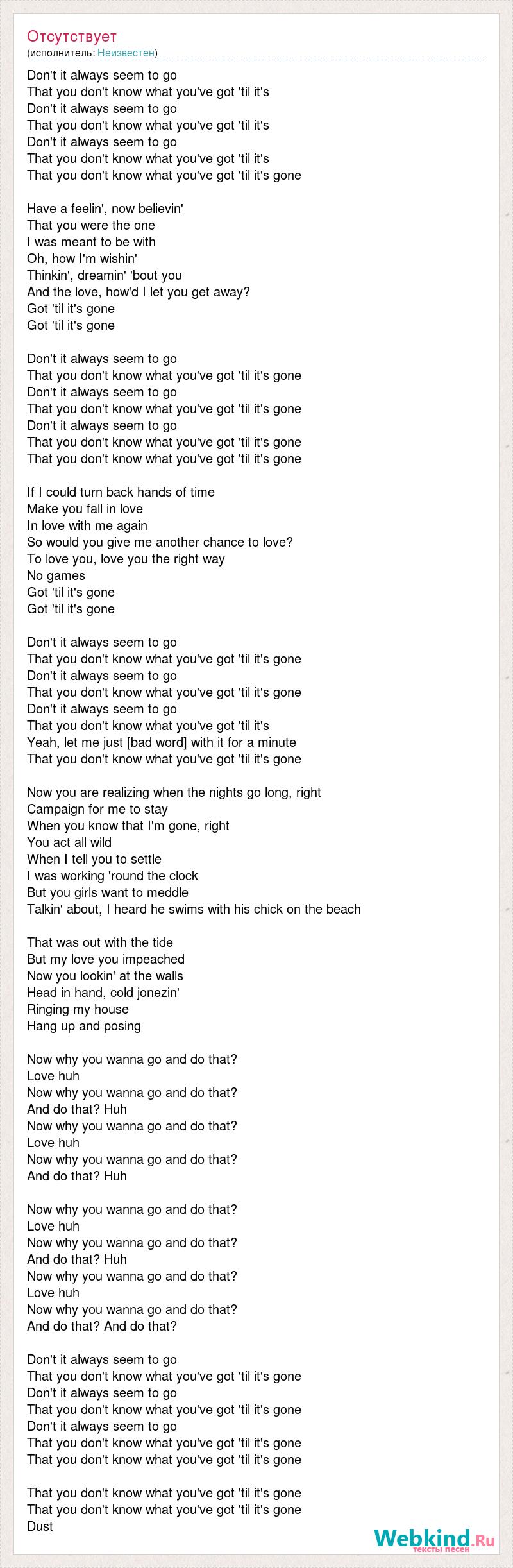 Don't it always seem to go