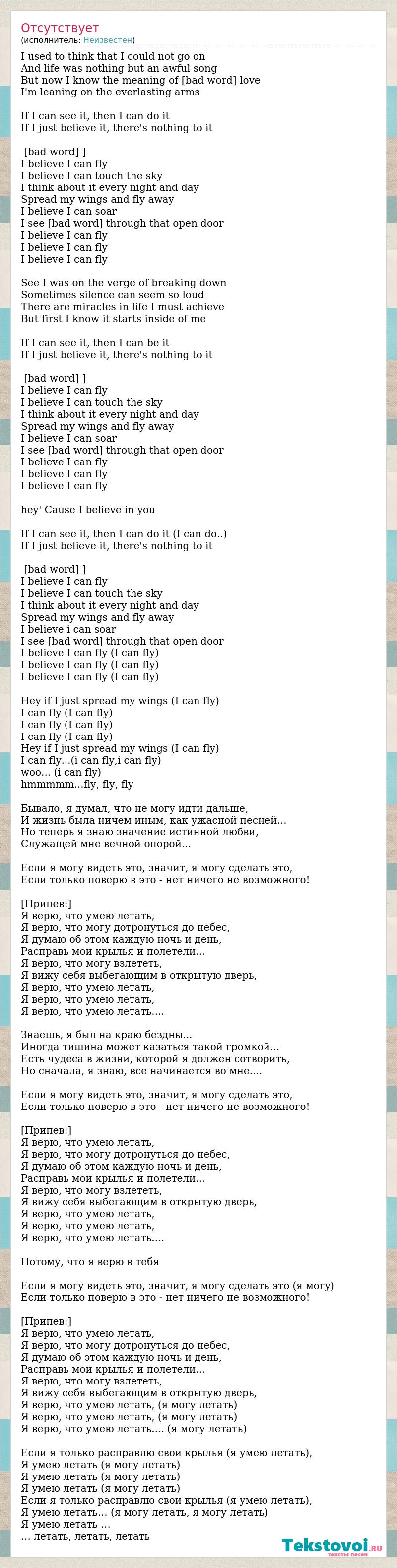 Я верю, что умею летать.... (я могу летать)